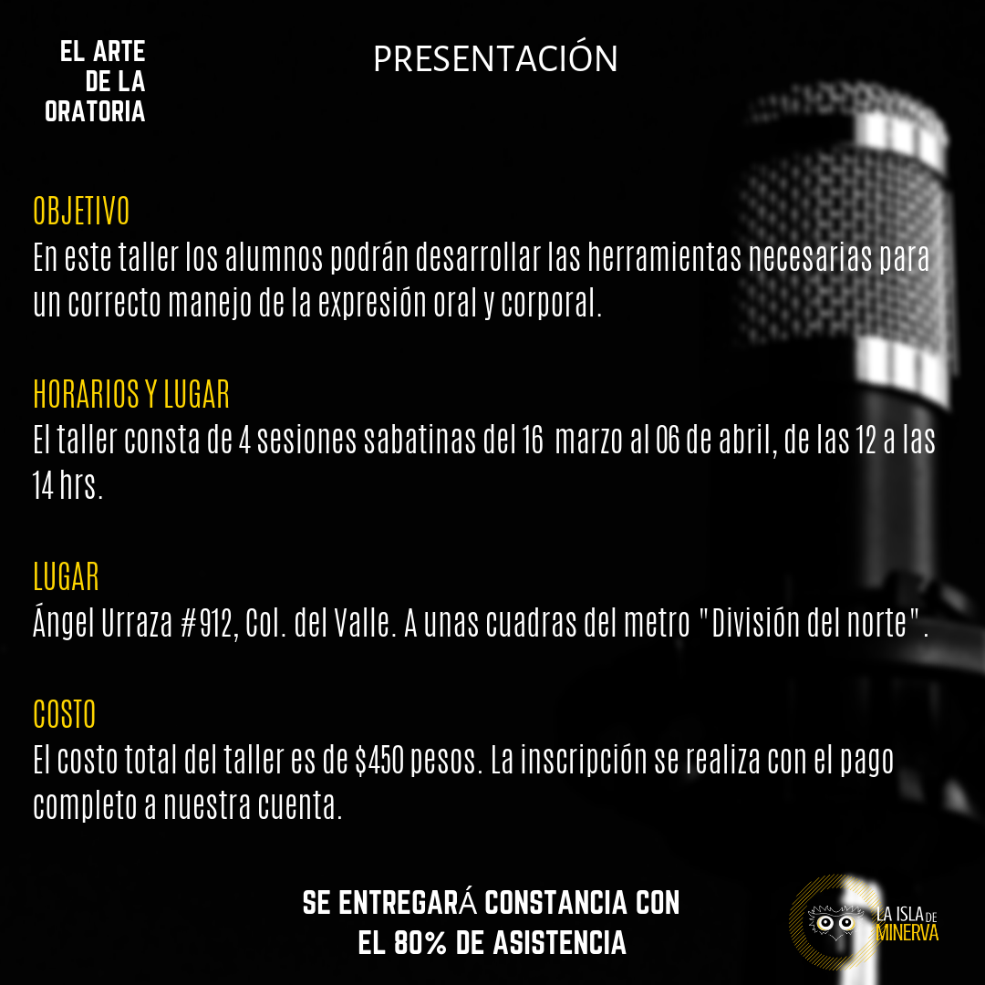 Para más informes e inscripciones manda un whatsapp al 5560320457 o un mail a laislademinerva@gmail.com