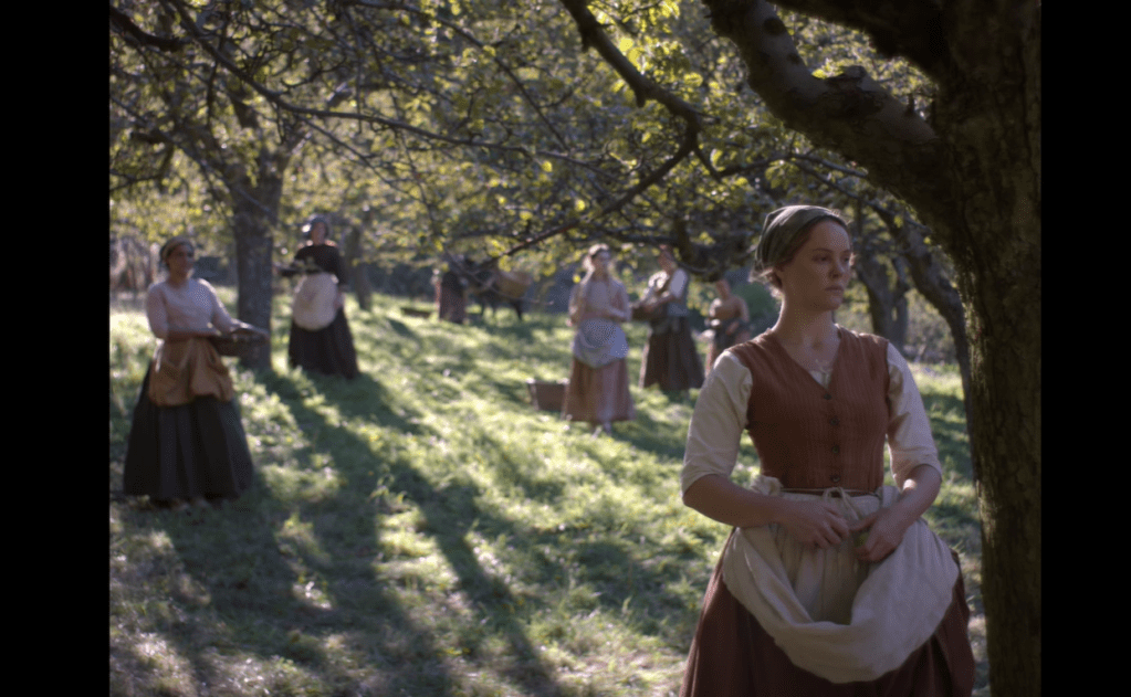El vestuario campirano del siglo XIX, a cargo de Pascaline Chavanne, es hermoso. Chavanne ganó en 2014 el premio César al Mejor Diseño de Vestuario por la película Renoir (2012) y ha sido nominada en numerosas ocasiones por su excelente trabajo. Las jóvenes usan faldas largas ajustadas a la cintura que acentúan sutilmente sus cuerpos esbeltos. Los corpiños son ceñidos al pecho, no tanto como en otras películas de época como Pride & Prejudice (2005), debido a que las mujeres se hacen cargo de las tareas físicas de la aldea, pero lo suficiente para darles una bonita figura. Así como las bandanas en el pelo que recuerdan a una Blair Waldorf si ésta se hubiera animado a vivir en el campo.
