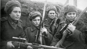 La Unión Soviética movilizó a las mujeres dentro de las principales unidades del ejército desde las primeras etapas de la guerra. Casi un millón de mujeres formaron parte del Ejército Rojo en distintos cargos, ya fuera siendo parte de la unidad sanitaria o cargando la artillería más pesada, La mayoría estaba en la primera línea. Disparaban armas de fuego, eran pilotos aviadoras, tanquistas y francotiradores. Sólo 30,000 fueron reconocidas y son aún recordadas. Se calcula que sólo sobrevivió una cuarta parte de las mujeres graduadas de la escuela militar.