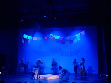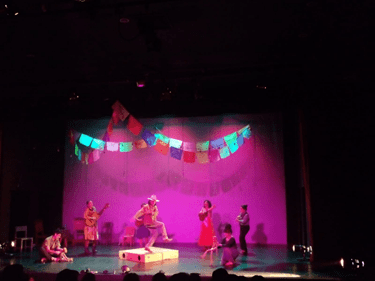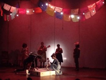 Con ayuda de las luces y los efectos de sonido creados por los mismos actores, se crea un ambiente festivo dentro de la sala de teatro, en la que el público participa también cuando los actores hacen preguntas al aire y las respuestas de los asistentes no se hacen esperar. En realidad, asistir a esta obra es como asistir a una fiesta situada en el sur de México.