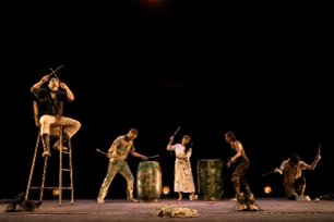 La obra de teatro Espantapájaros es una propuesta escénica que destaca por su diseño corporal, coreográfico y sonoro, a partir de cotidianos y materiales reciclados para contar la historia de un ex niño soldado, sus pasajes dolorosos y el reencuentro consigo mismo para poder soltar y perdonarse. Es la historia de un niño a quién a los 7 años reclutan para convertirse en niño soldado, esta condición lo hace vivir experiencias duras para cualquier ser humano, es un ex niño soldado quién brinda esta historia que se podría pensar que sucede en contextos muy lejanos.