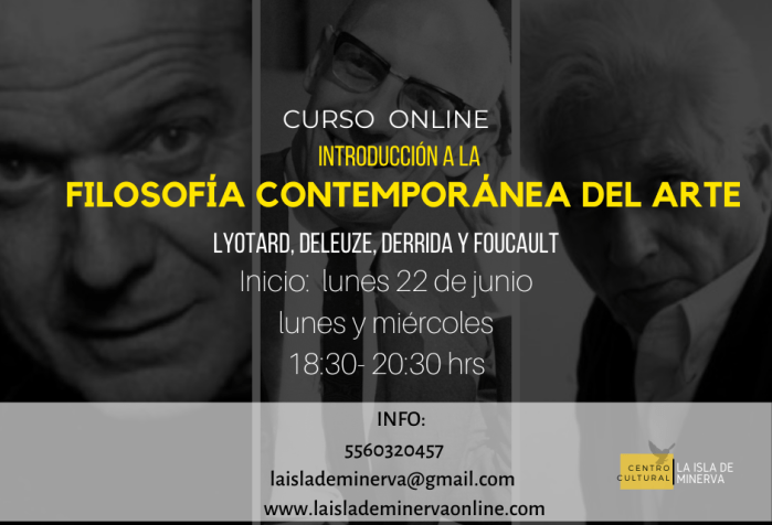 Objetivo El curso tiene como objetivo introducir al alumno a la filosofía del arte francesa de la segunda mitad del XX. Esto se logrará a partir del estudio de cuatro … Seguir Leyendo Introducción a la filosofía del arte. Lyotard, Deleuze, Derrida y Foucault.