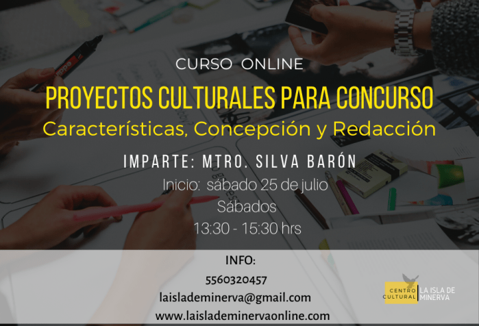 Presentación Se trata de un curso-seminario en el que se estudiarán las características de proyectos culturales para concurso en las principales convocatorias nacionales. Se tratará los temas nodales para su … Seguir Leyendo Curso: Proyectos culturales para concurso:características, concepción y redacción