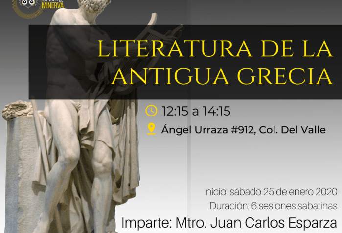 Dirigido a Cualquier persona que tenga interés en conocer la cultura griega y su literatura Duración Inicio: Sábado 25 de enero Duración: 6 sesiones sabatinasHorario: 12:15 a 14:15 Lugar: Ángel … Seguir Leyendo Curso: Literatura Griega